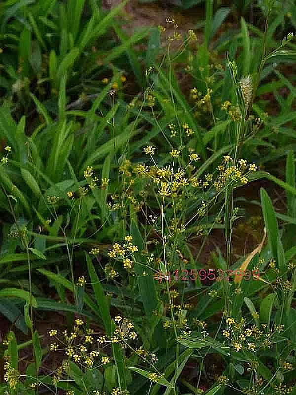 它叶片像竹叶,茎秆笔直,夏天开出伞状小黄花,花谢后结出小芝麻似的果子。