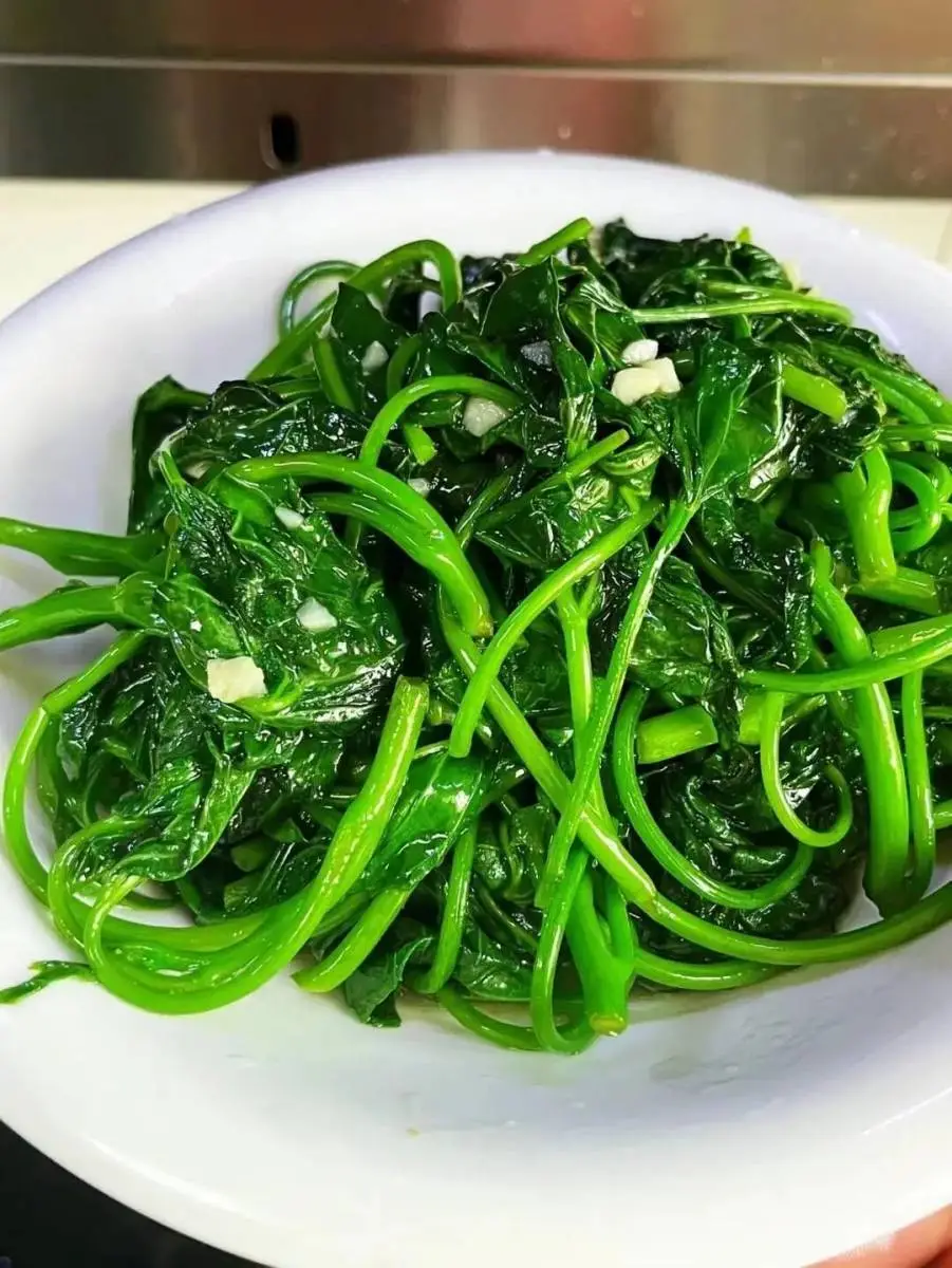 番薯叶,妥妥的助排便神菜,我真的不允许还有人不知道它!每次拉不出来的时候就吃它,吃完后第二天超级通畅!太有效了!这道蒜蓉炒番薯叶很好吃,做法还简单,按照这个方法炒出来的和饭店味道一样。瞧这小色,翠绿鲜嫩的,一看就很健康,一看就知道好吃。
