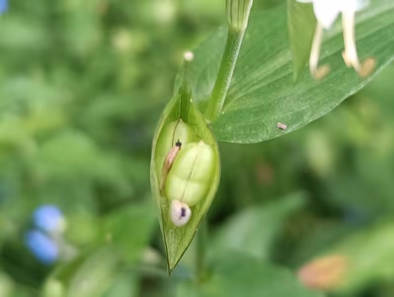果,果期8-10月,蒴果椭圆形,种子棕黄色,一端平截,腹面平,有不规则窝孔。