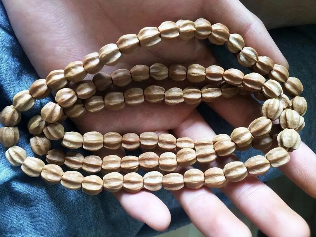 如今有人把它的果实从间打一个洞,用线串起来,制作成手串,戴在手上,一串大概30多粒到40粒的苦楝树果仁,能卖到40块钱一串。